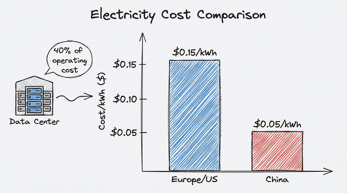 This leads to an interesting phenomenon: while Chinese AI companies face limitations in chip development, they possess a structural advantage in the more fundamental resource of electricity.