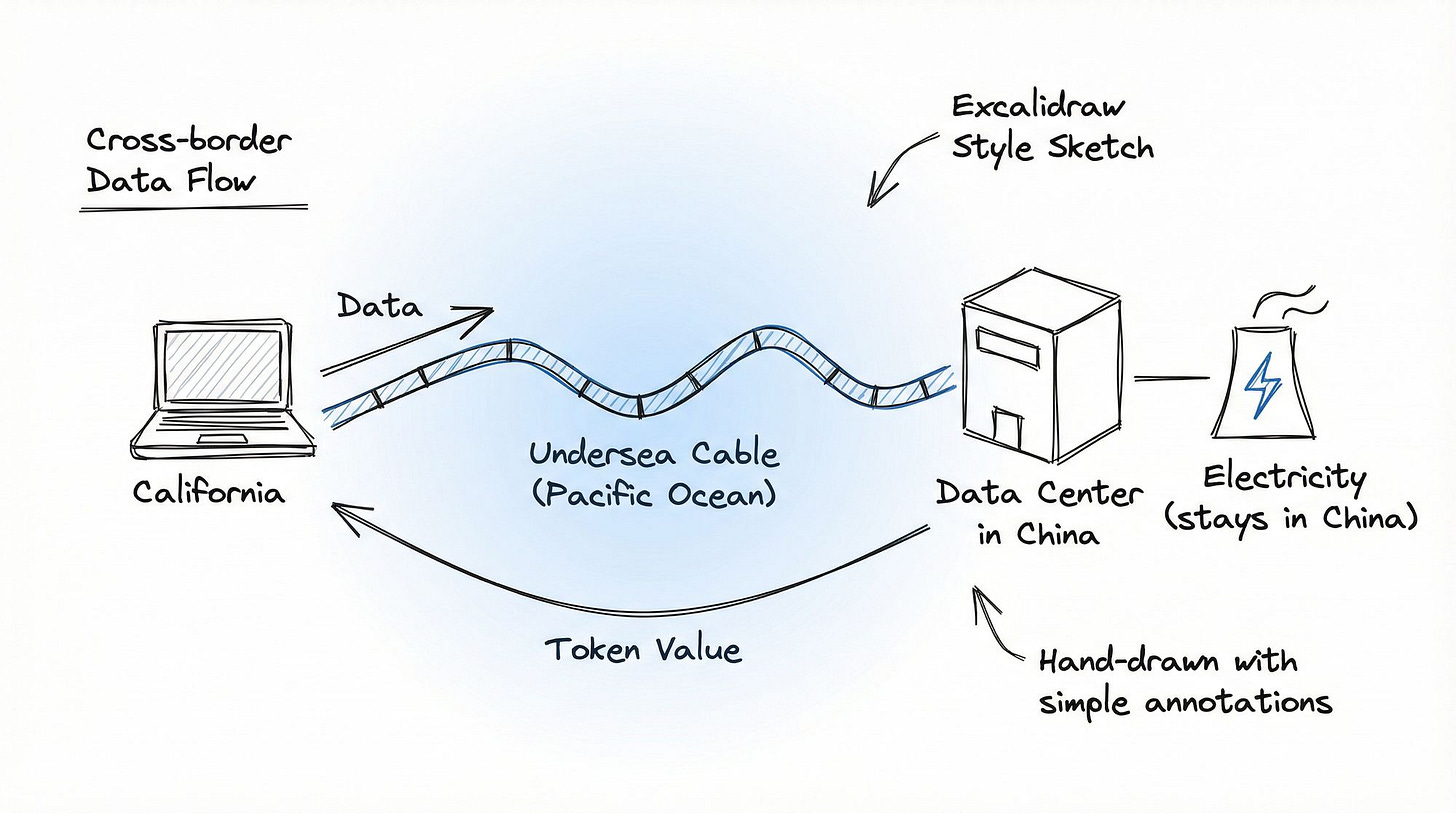 What happens when an American developer calls the MiniMax API in San Francisco? Data travels from California, via a Pacific undersea fiber optic cable, to a data center in China. The GPU performs inference calculations there, and the results are then transmitted back to the United States.